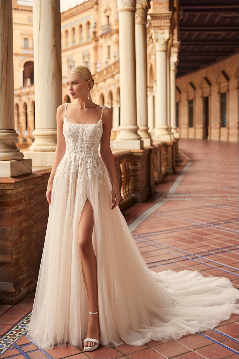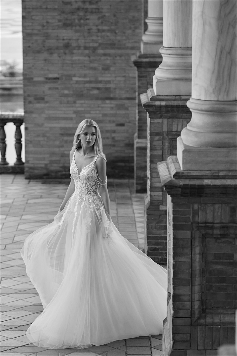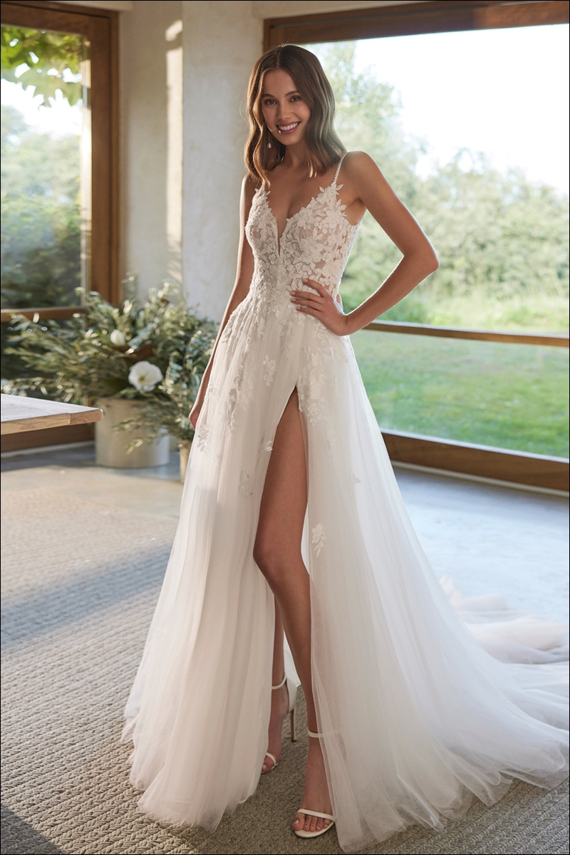 Eine klassische Silhouette für die romantische, aber traditionsbewusste Braut! A-Linie ist der Stil, welcher Tradition mit Romantik vereint. A-Linie Brautkleider schmeicheln immer der Figur und können zu jeder Feier getragen werden. Von leicht Boho-inspirierten Kleidern bis zu modischen Glamour-Styles gibt es für jede Braut eine A-Linie!